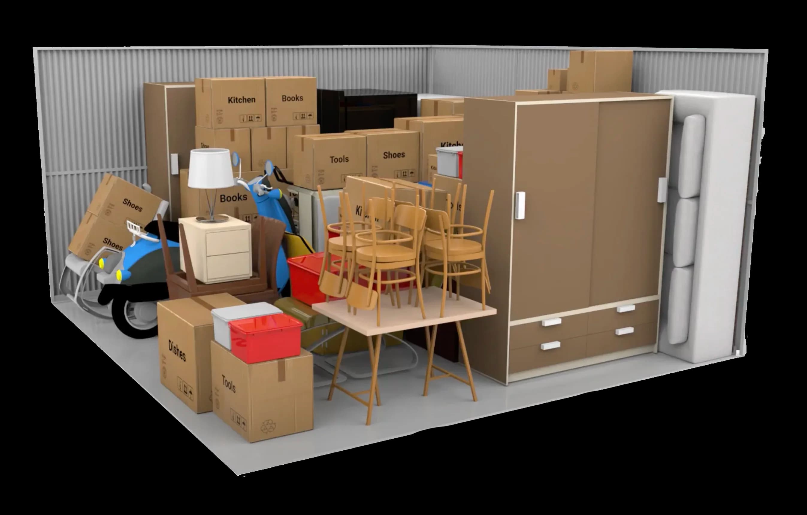 - 10x10 units – Great for small apartment contents, student storage, or office supplies.